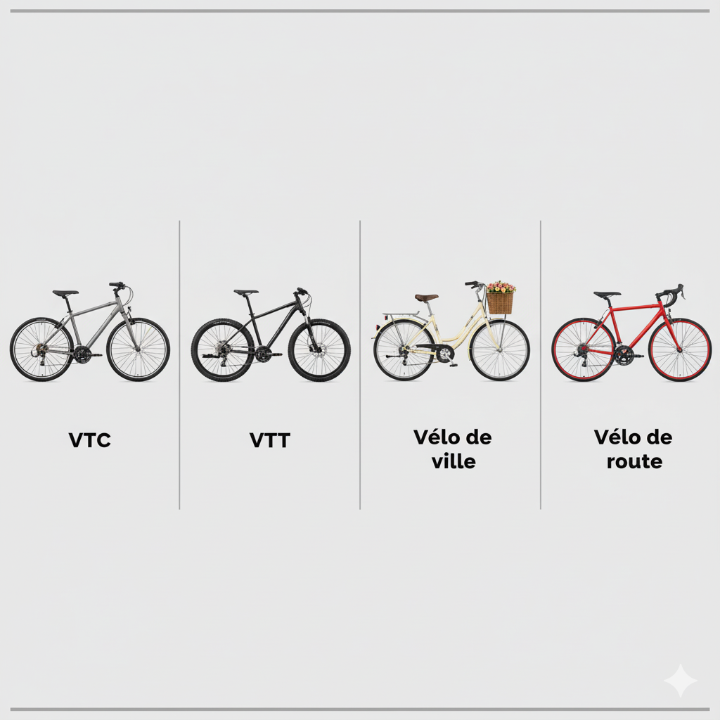 C’est la première question à se poser. Un vélo conçu pour la route sera fragile et inconfortable en forêt, tandis qu’un VTT sera lourd et lent sur le bitume. Voici les quatre grandes familles pour vous repérer :